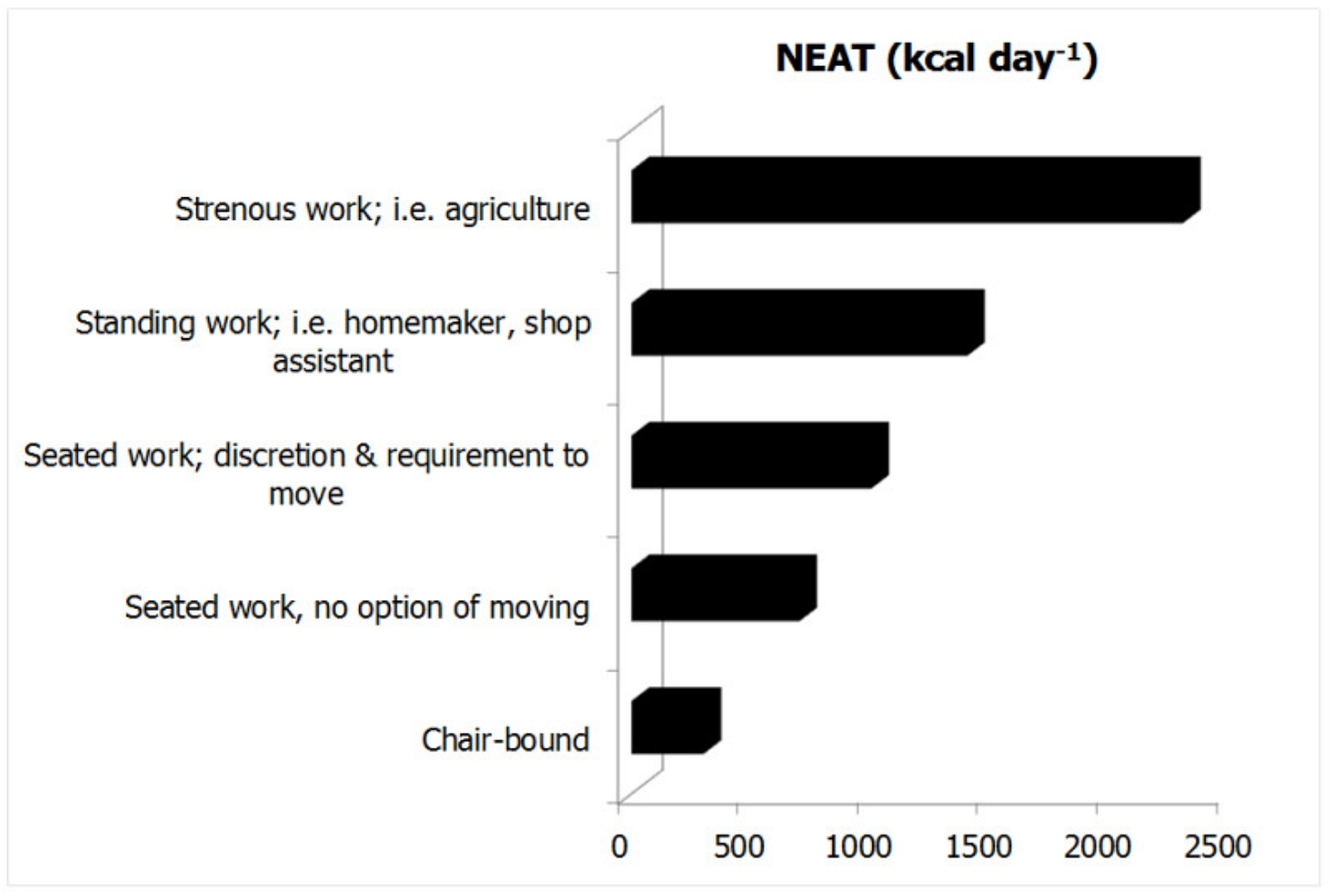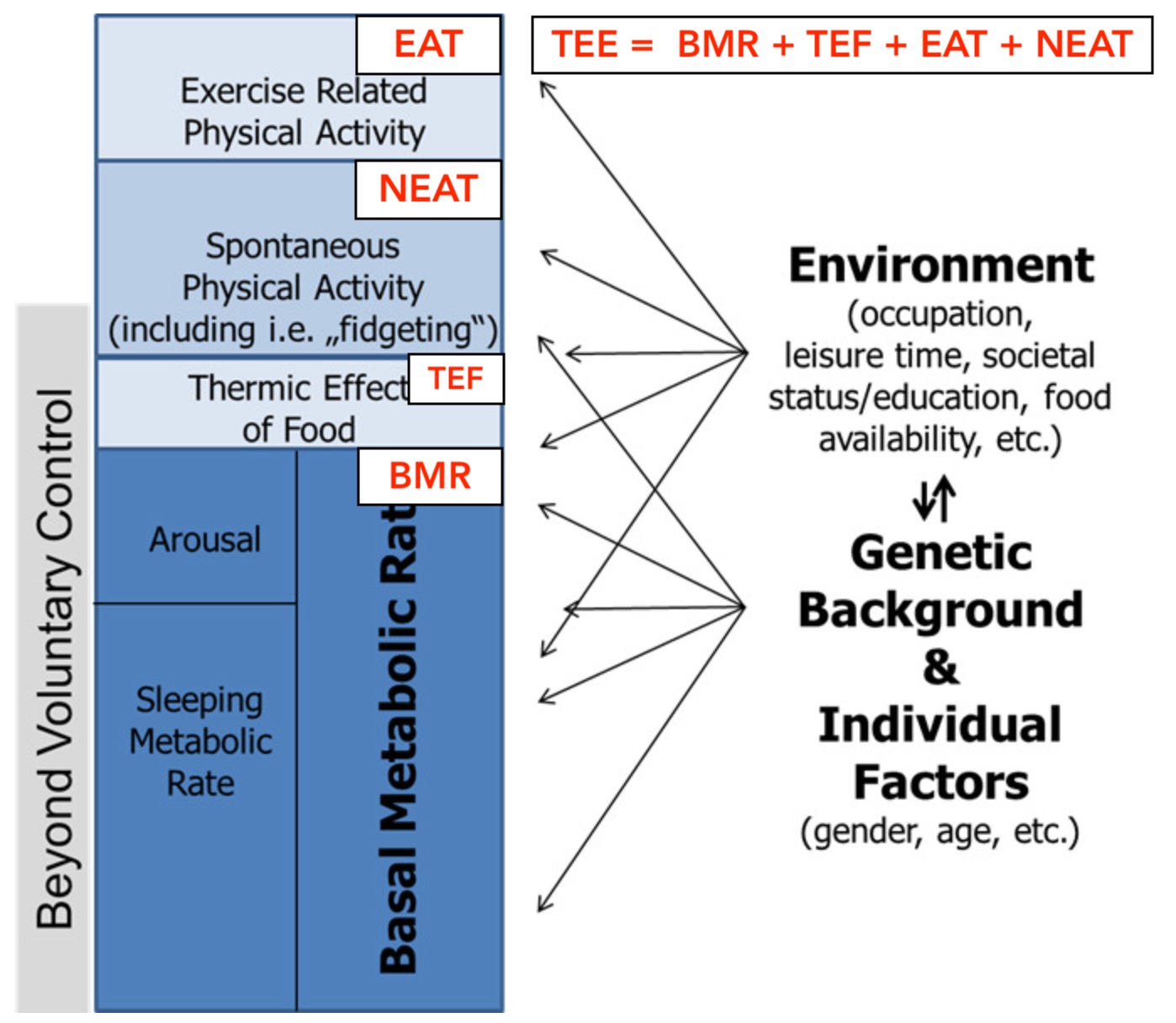 von Loeffelholz C, Birkenfeld AL. Non-Exercise Activity Thermogenesis in Human Energy Homeostasis. [Updated 2022 Nov 25]. In: Feingold KR, Anawalt B, Blackman MR, et al., editors. Endotext [Internet]. South Dartmouth (MA): MDText.com, Inc.; 2000-. Available from: https://www.ncbi.nlm.nih.gov/books/NBK279077/